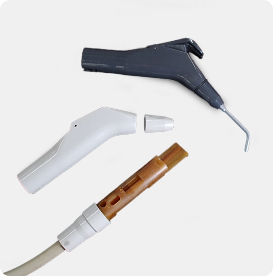 engineering plastics. We have extensive experience in the medical field in particular, including parts for dental equipment. We also offer integrated post-processing services, such as processing molded products and assembling metal parts.
